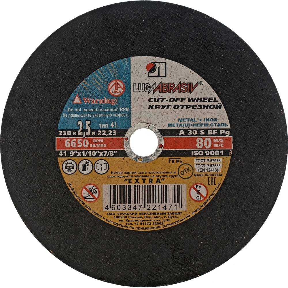 Россия круг отрезной по металлу,230x2,5x22 мм //73681