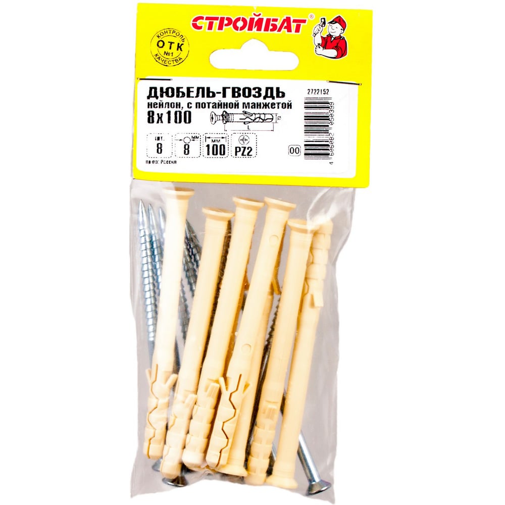 Дюбель-гвоздь нейлон потайная манжета Стройбат 8x100 8 шт 306130