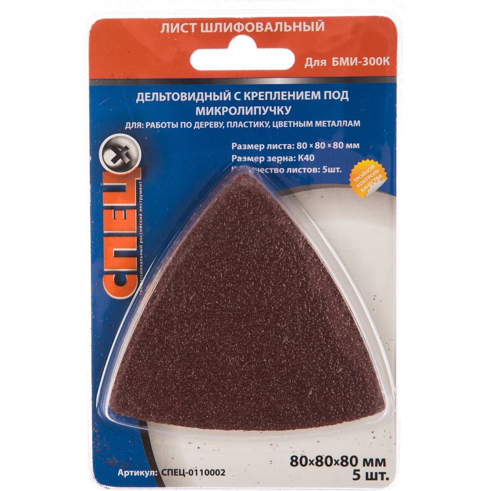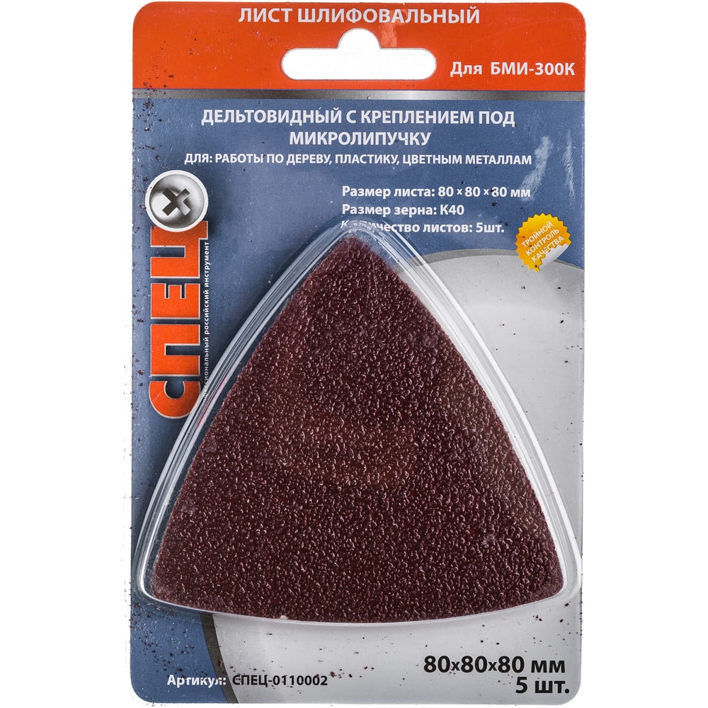 Шлифовальный лист дельтовидный (5 шт.; 80х80х80 мм; зерно 40) СПЕЦ-0110002