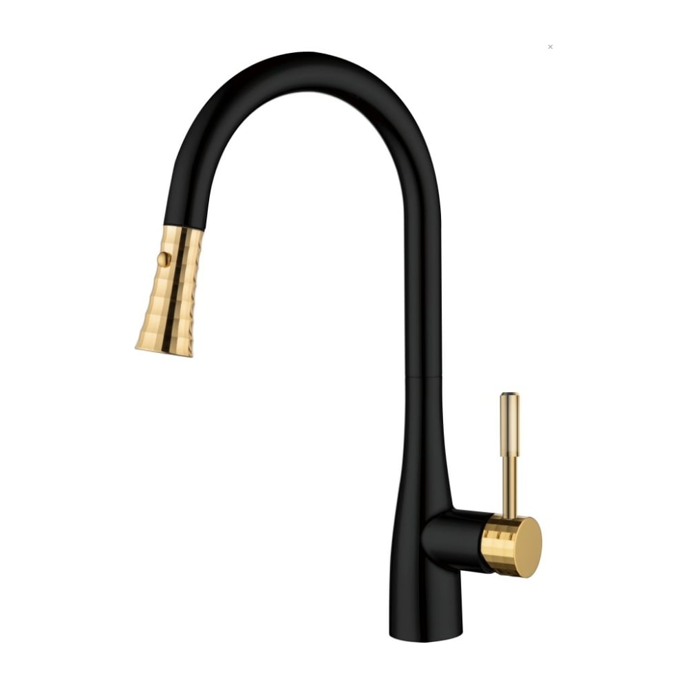 Смеситель для кухни D&K Rhein.Schiller с выдвижной лейкой, черный-золото DA1462517A