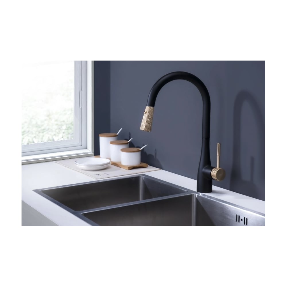 Смеситель для кухни с выдвижной лейкой DQ Rhein.Schiller, черный-золото DA1462517A