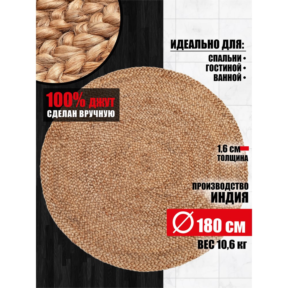 Джутовый коврик ComeForte круглый 180x180 см RJ-03