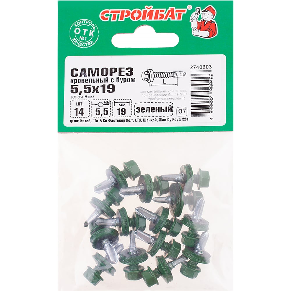 Кровельные саморезы с буром Стройбат 5,5x19 зеленый 14 шт 353010