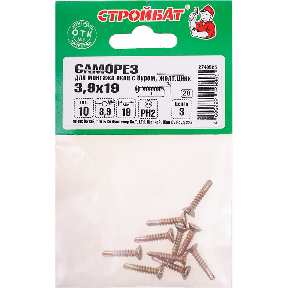 Саморезы для монтажа окон с буром Стройбат 3,9x19 желтый цинк 10 шт 275081