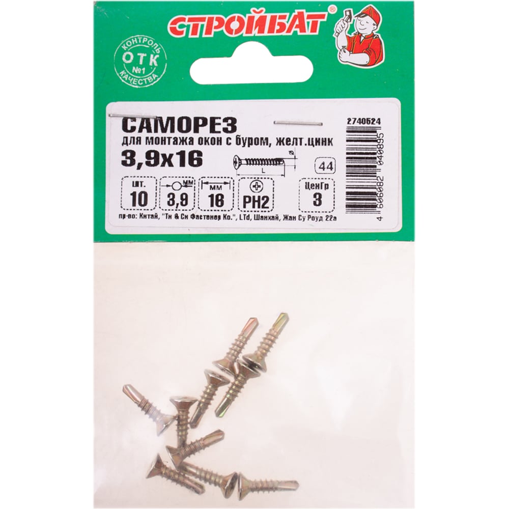 Оцинкованные саморезы для монтажа окон Стройбат 3,9x16 10 шт 275071