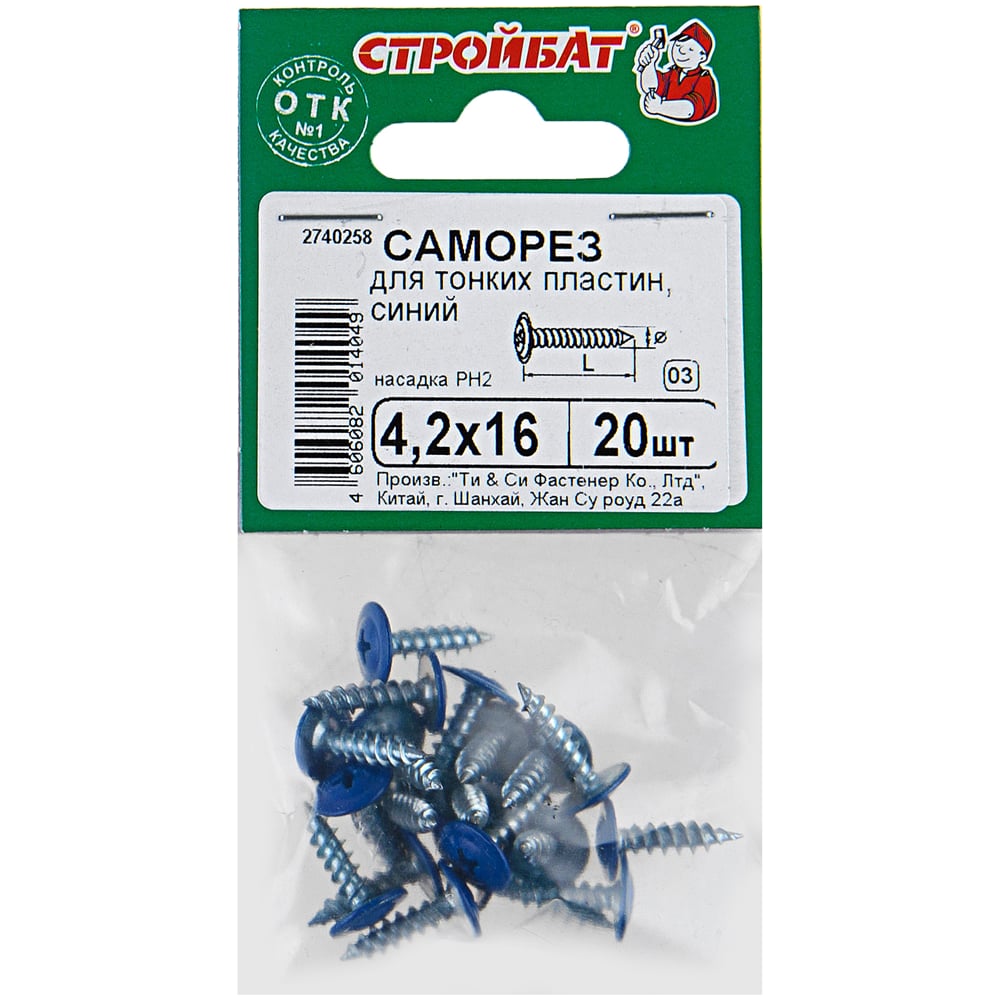 Саморезы для тонких пластин Стройбат 4,2x16 синий/белый цинк 20 шт 232860