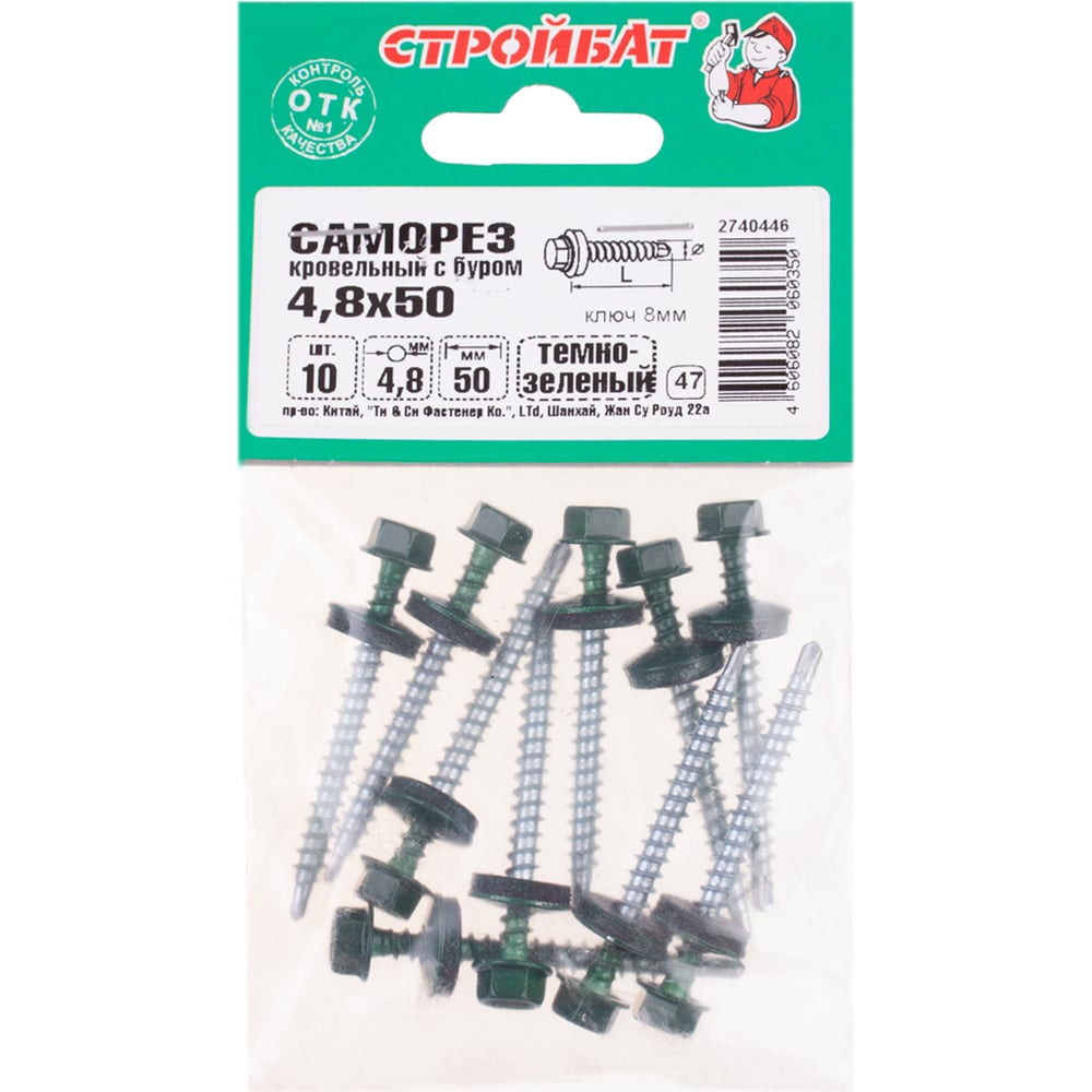 Кровельные саморезы Стройбат 4,8x50 темно-зеленый 10 шт 352900