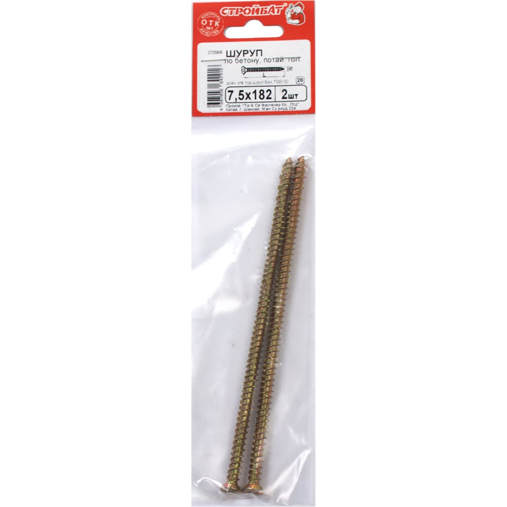 Шуруп по бетону Стройбат 7,5x182 2 шт. 310610