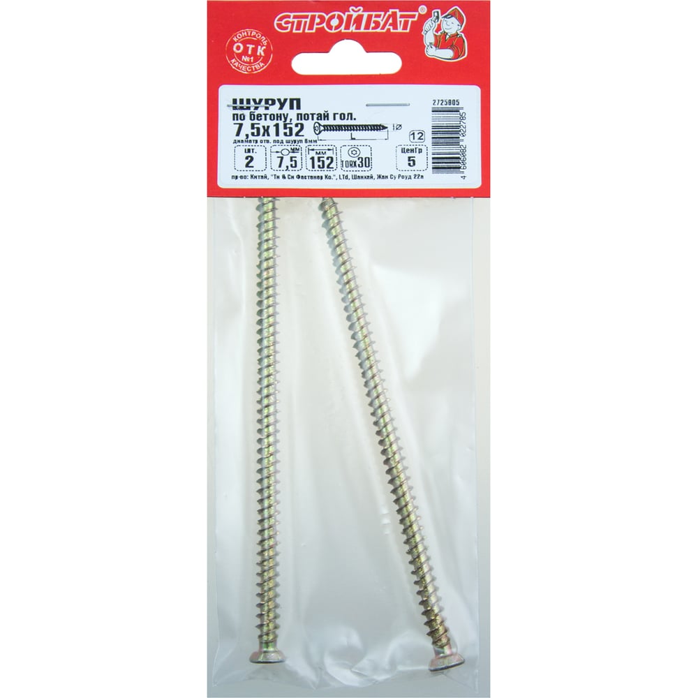 Шуруп по бетону Стройбат 7,5x152 2 шт. 269051