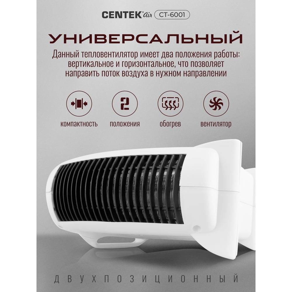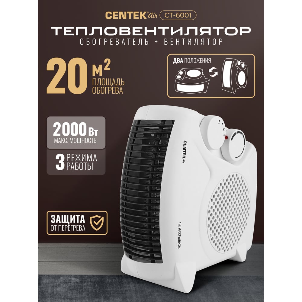 Тепловентилятор Centek 1000/2000Вт, 2 положения, металлическая решетка обогрев/вентиляция CT-6001