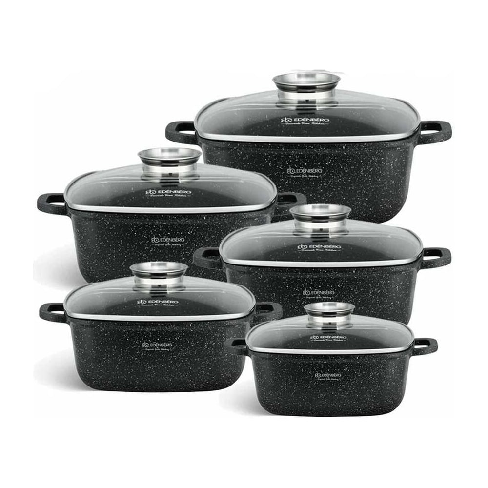 Набор квадратных казанов Edenberg 12 предметов, черный мрамор, 2.8/3.7/4.4/5.5/6.5 л EB-3986