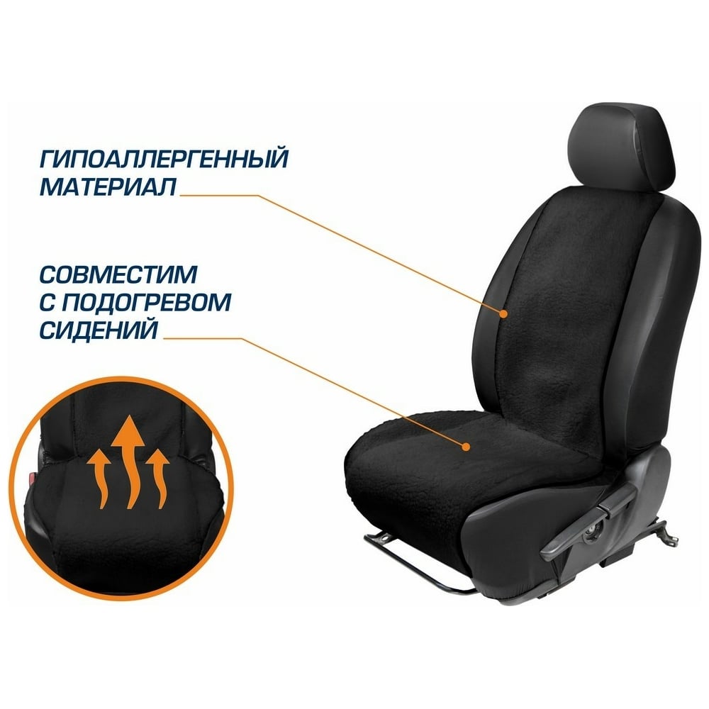 Меховая накидка на сиденье автомобиля AutoFlex овчина, универсальная, 1 шт., цвет черный 91207