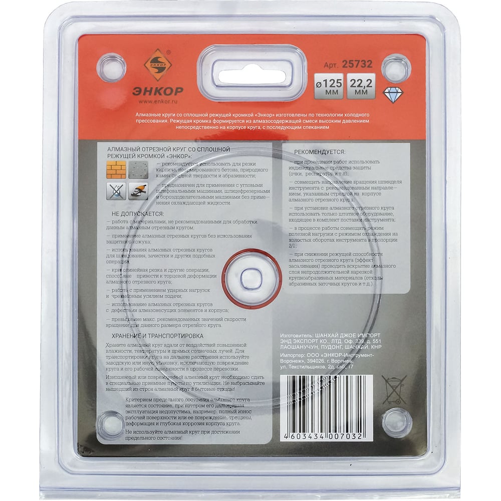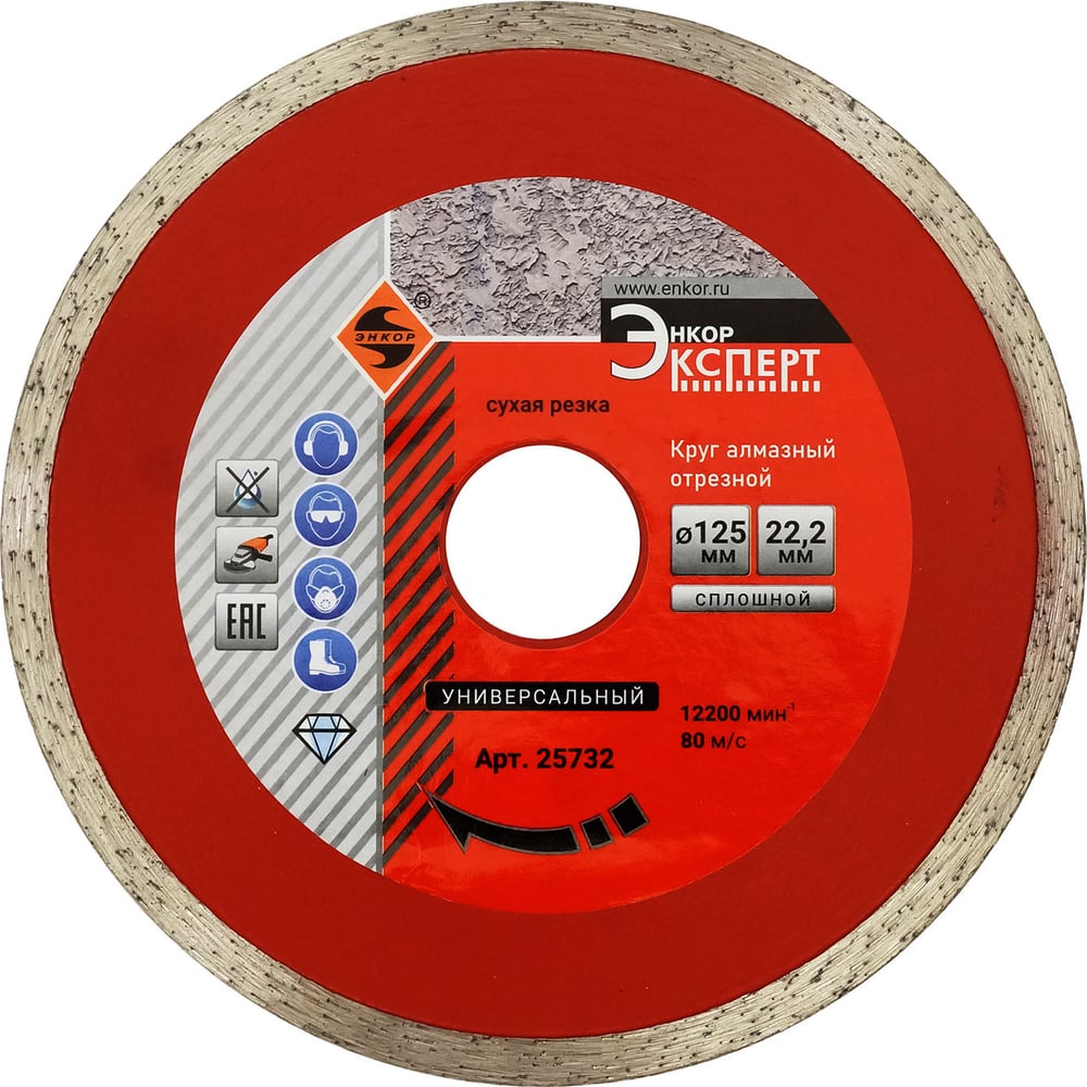 Энкор круг алм. ф125x22,2мм, сплош унив.сух рез.1/10/100 25732