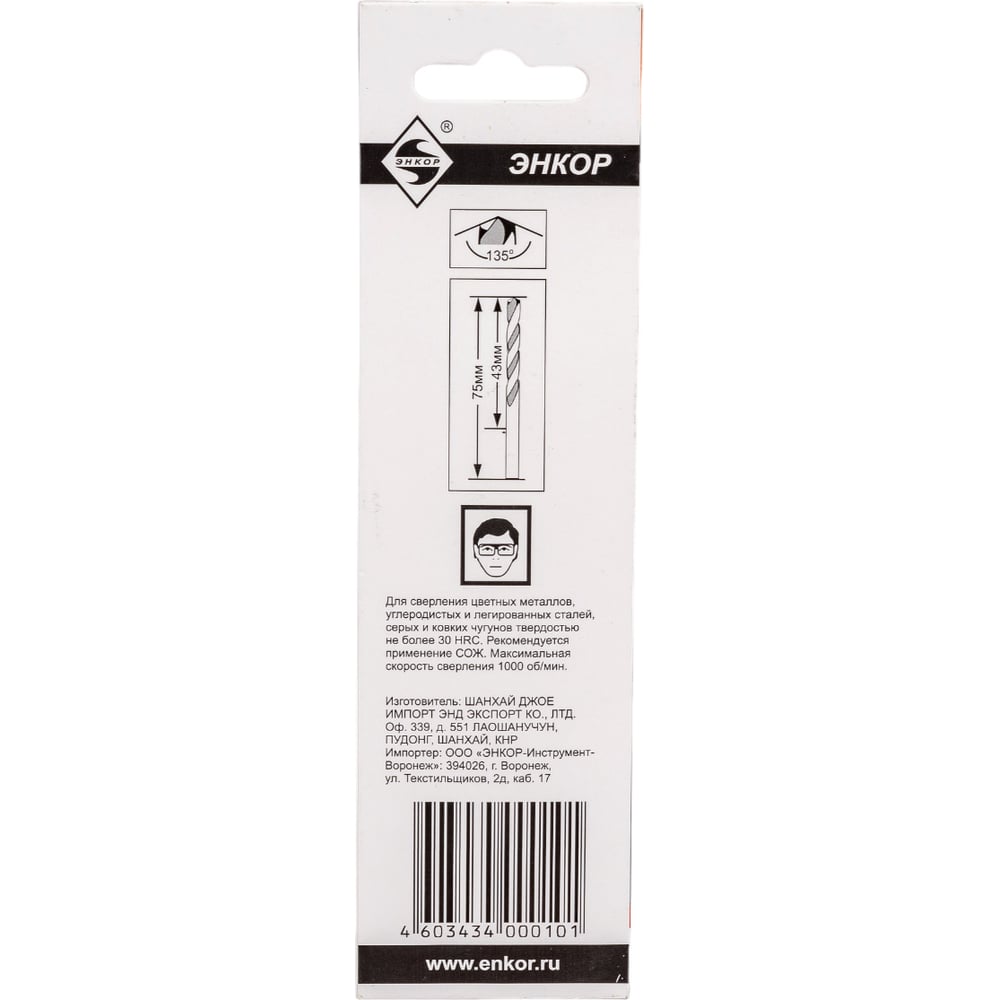 Энкор сверло д/мет р6м5 4,0мм 2 шт. в блистере 25340