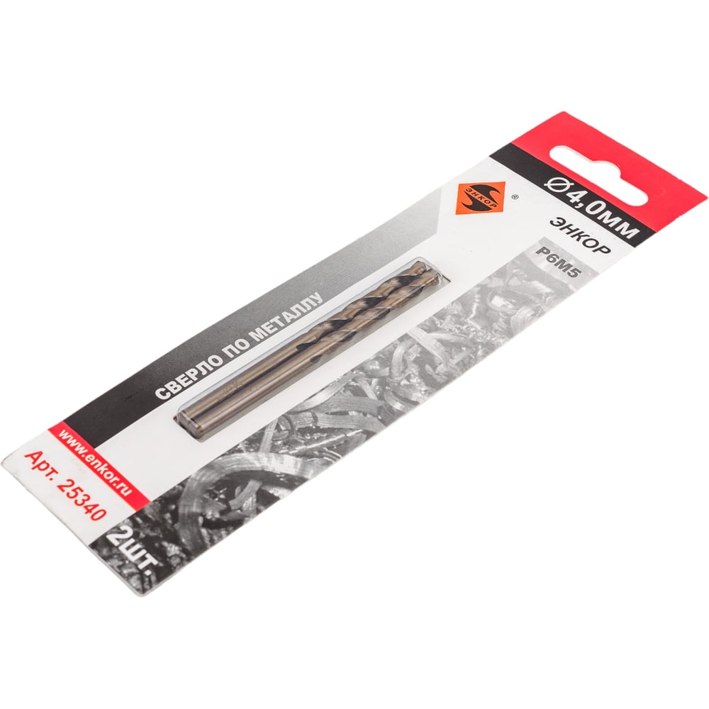 Сверло по металлу (4.0 мм; 2 шт; блистер) Р6М5 Энкор 25340