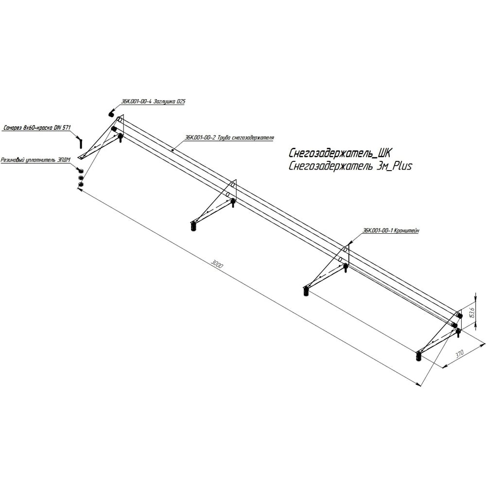 Универсальный трубчатый снегозадержатель Grand Line Optima RAL 7024, 3 м ШК 213045