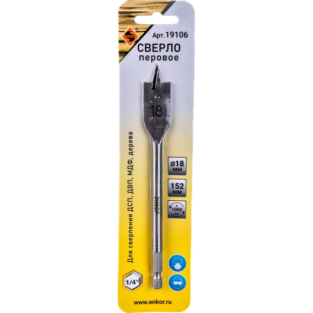 Энкор сверло перовое по дереву ф18x152мм 1/50/200 19106