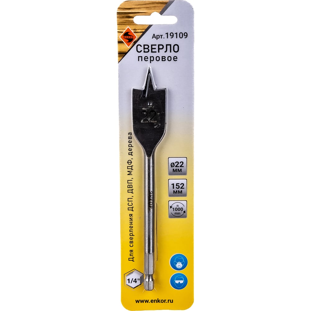 Энкор сверло перовое по дереву ф22x152мм 1/50/200 19109