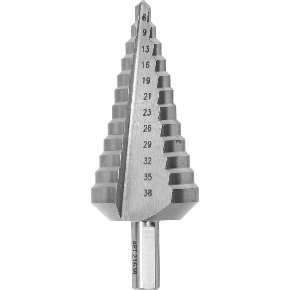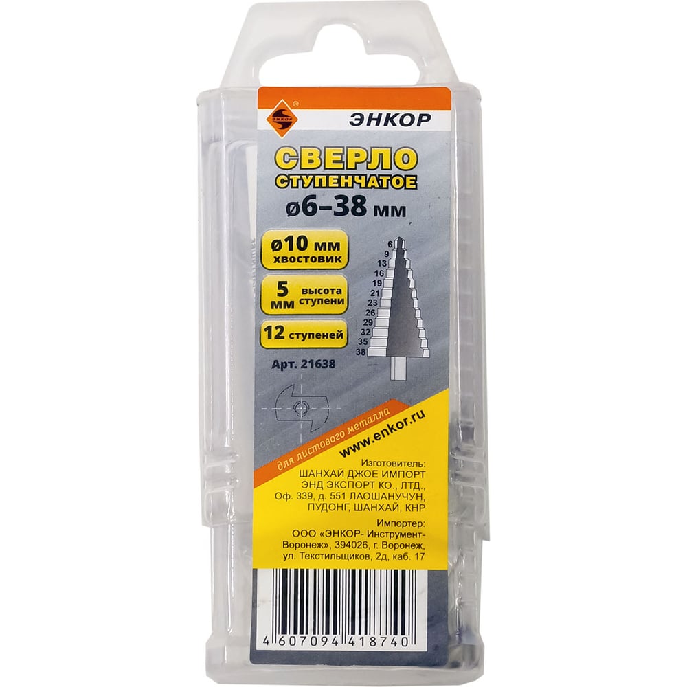 Сверло ступенчатое (6-38 мм; 12 ступеней; ход 5 мм) по металлу Энкор 21638