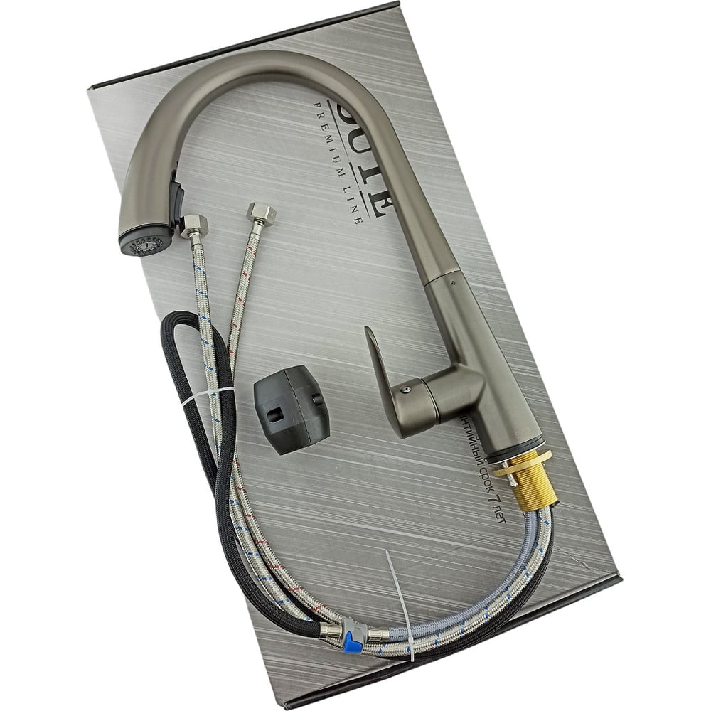 Смеситель для кухни OUTE с выдвижной лейкой, высота 410 мм, титановый T60933BY