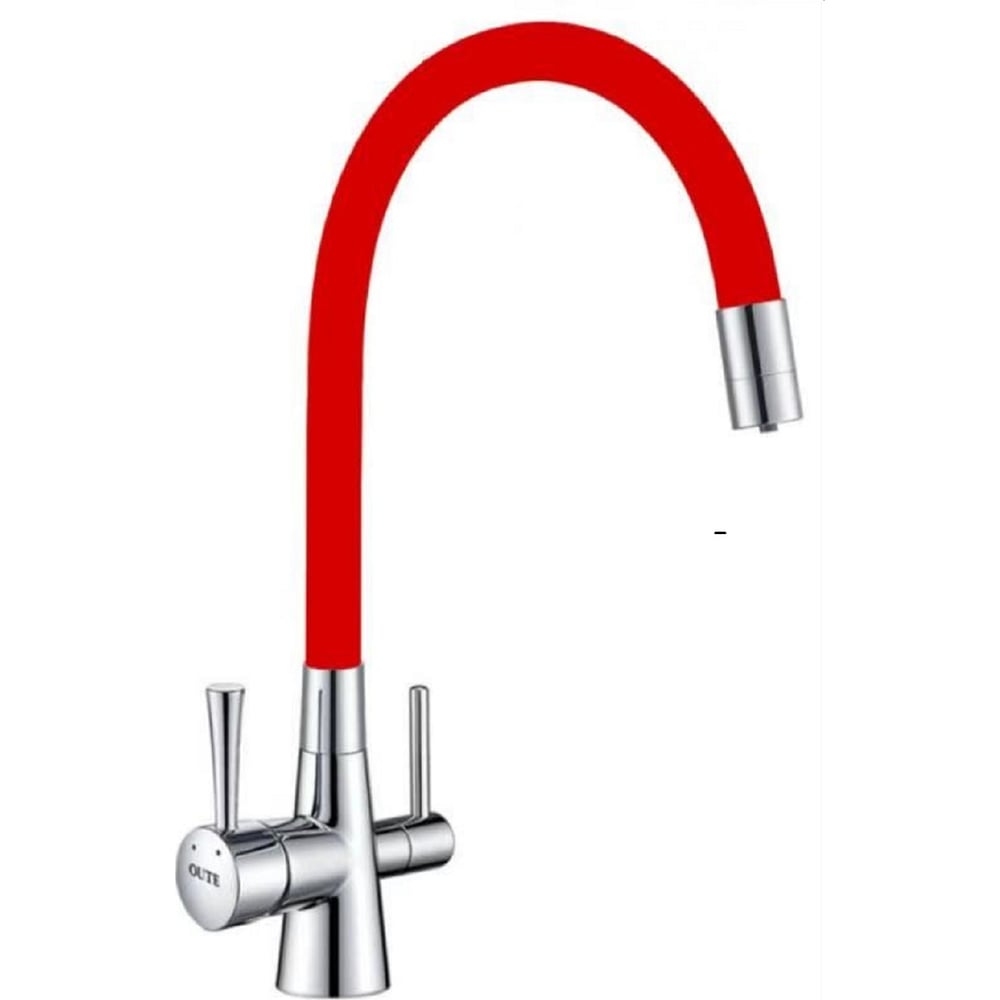 Однорычажный смеситель для кухни OUTE из латуни, хром/красный T60003B-8
