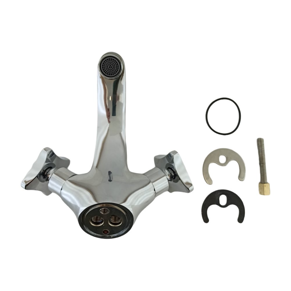 Смеситель для раковины Rainsberg двухвентильный, силумин, глянцевый хром R7201F R7101F