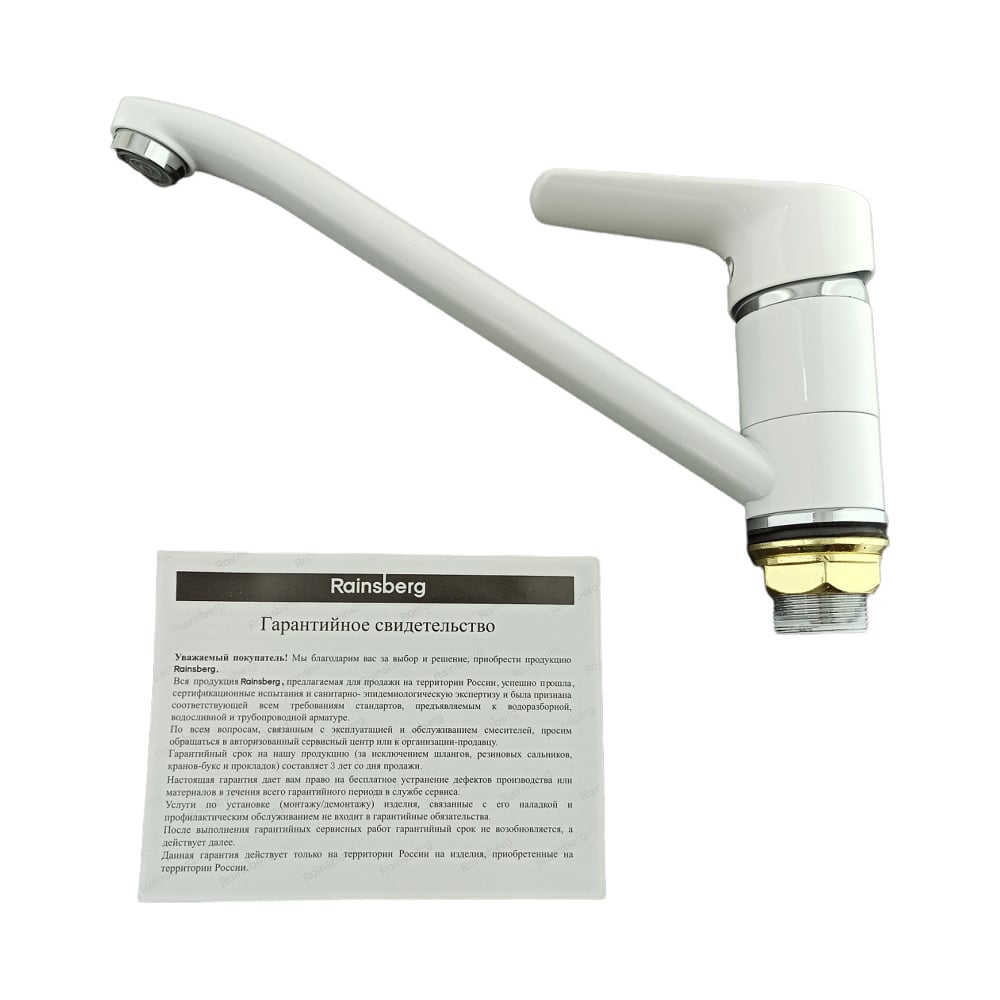 Смеситель для кухни Rainsberg белый, однорычажный, с аэратором R2003KF