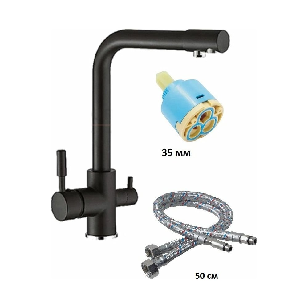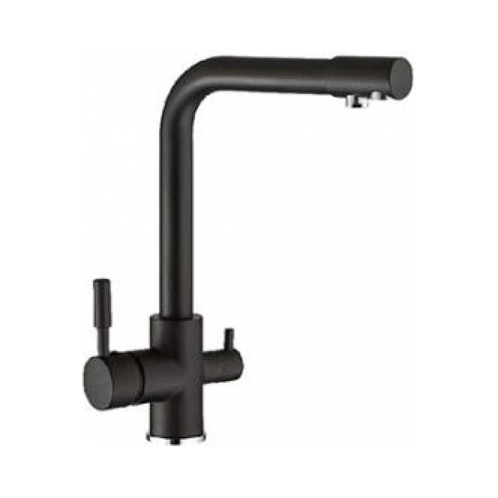 Смеситель для кухни OUTE черный матовый, 340 мм, однорычажный, с отдельным выходом под фильтр, с аэратором, излив высокий, поворотный T653BK-1
