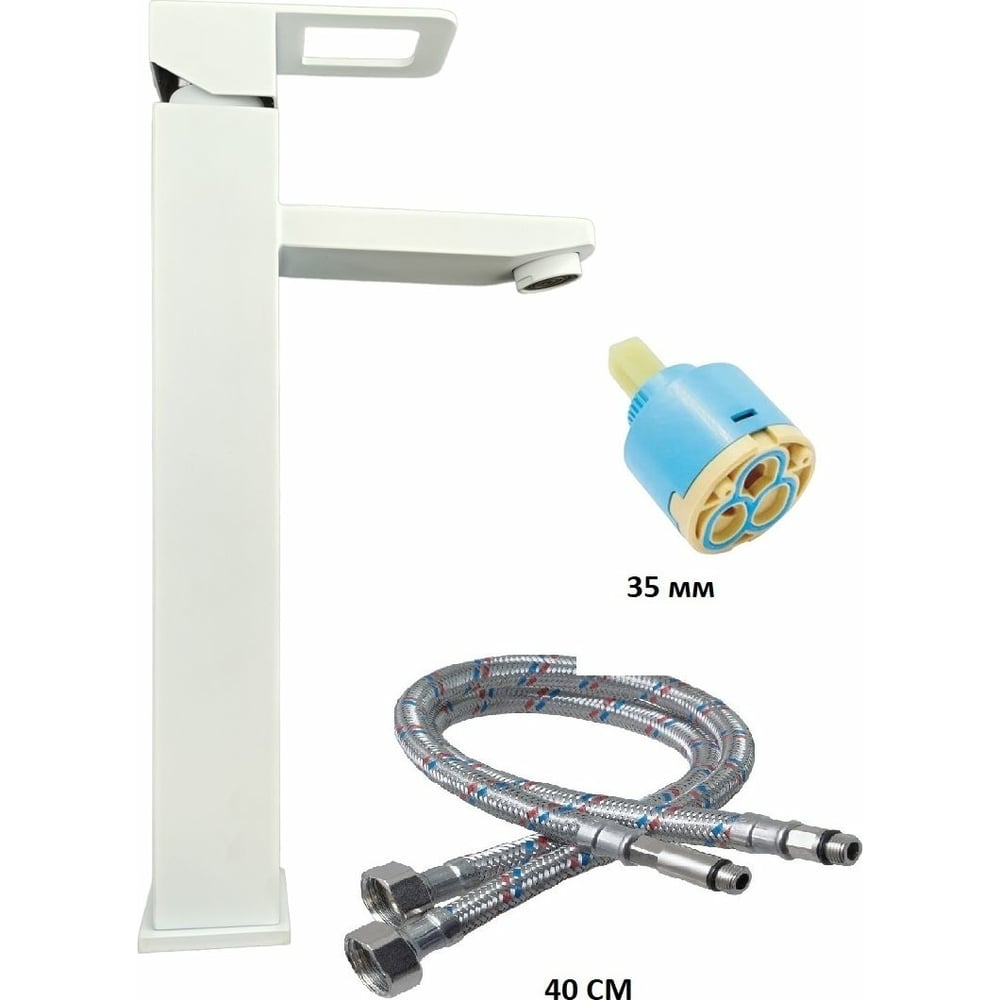 Смеситель для накладной раковины OUTE цвет матовый белый, однорычажное управление, монтаж на одно отверстие, на гайке, гибкая подводка T40201K-1