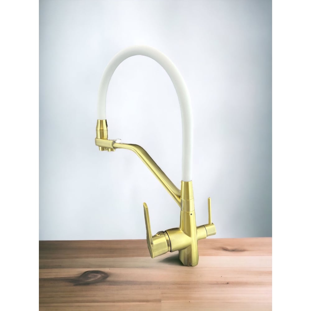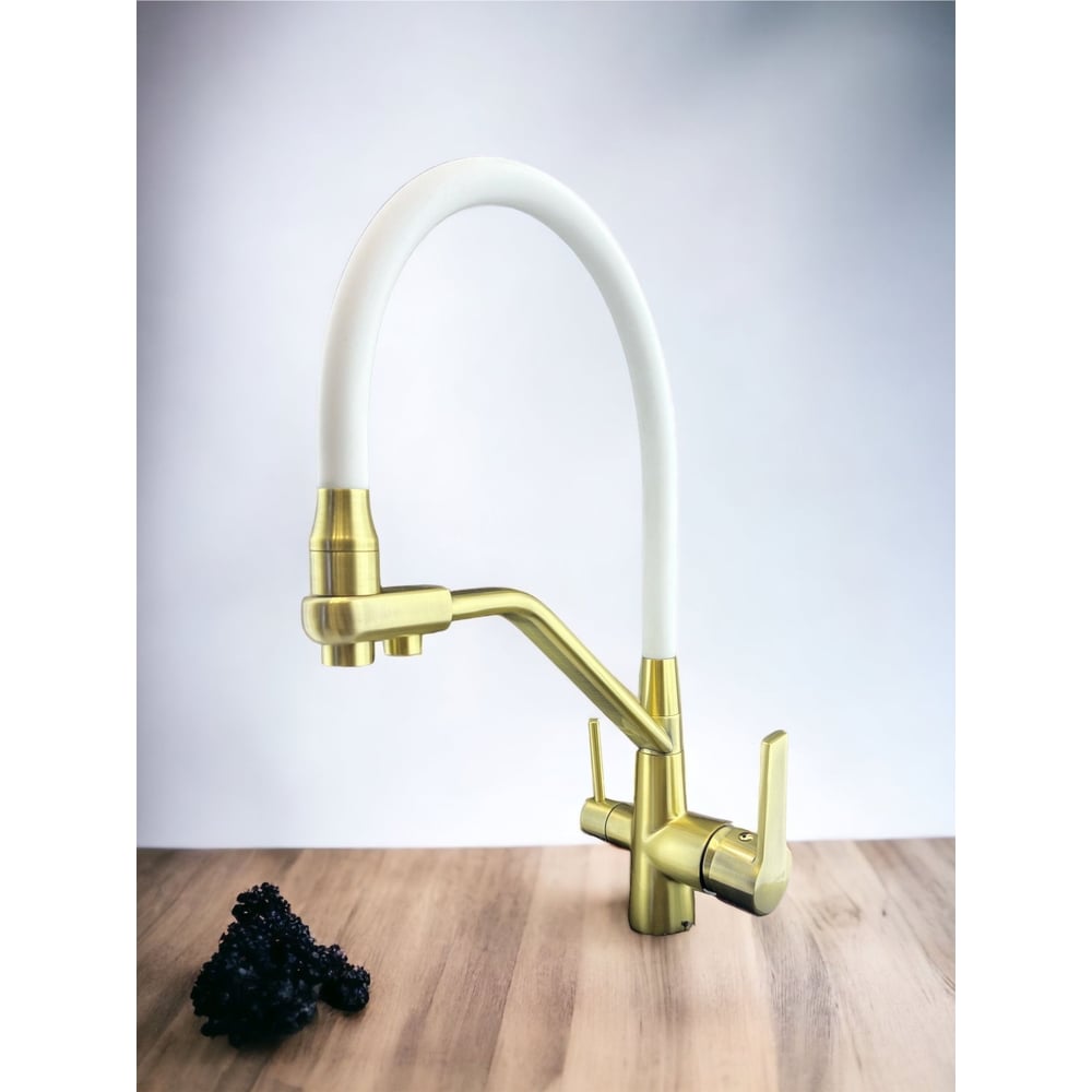 Смеситель для кухни Rainsberg корпус цвета бронза с гибким белым изливом, однорычажный, с отдельным выходом под фильтр R603CQ-0