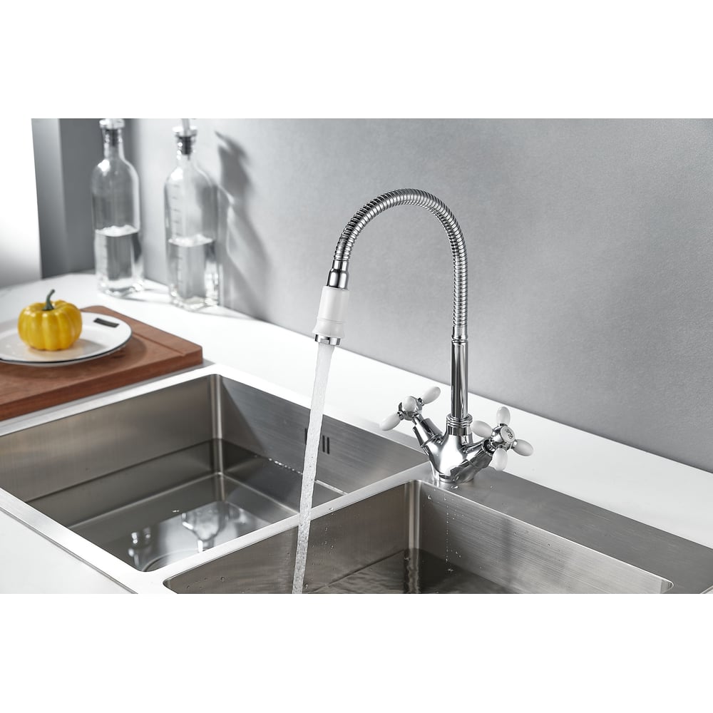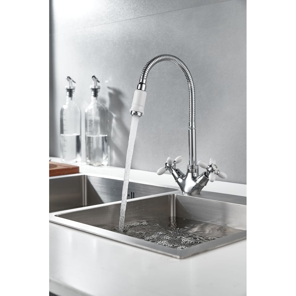 Смеситель для кухни Rainsberg с гибким изливом, двухвентильный, высота 260 мм, подвод воды гибкий R6013F-8