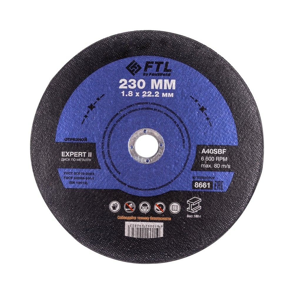 Круг отрезной по металлу Expert II (230x1.8x22.2 мм; A40SBF) FTL 8661