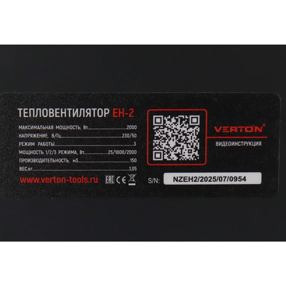 Электрический тепловентилятор VERTON Air EH-2 01.5985.9578