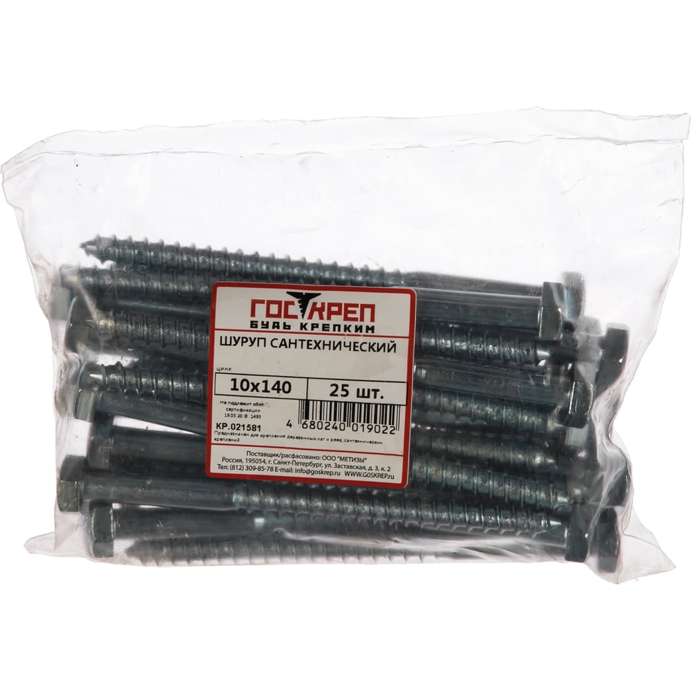 Сантехнический шуруп ГОСКРЕП 10х140 25 шт., пакет КР.021581 3-0010990