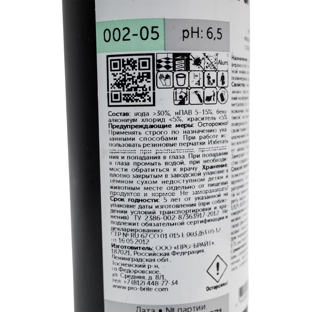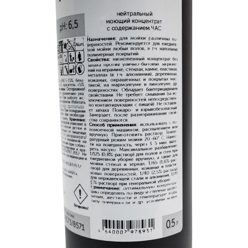 Низкопенный моющий концентрат PRO-BRITE NUTRAL с дезинфицирующими свойствами на основе ЧАС, 0.5 л 002-05