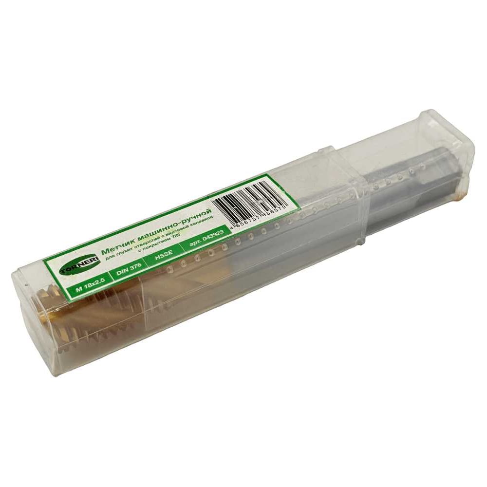 Машинно-ручной метчик для глухих отверстий TORNERI М18x2.5 HSSE 6H DIN376 TiN с винтовой канавкой 043923