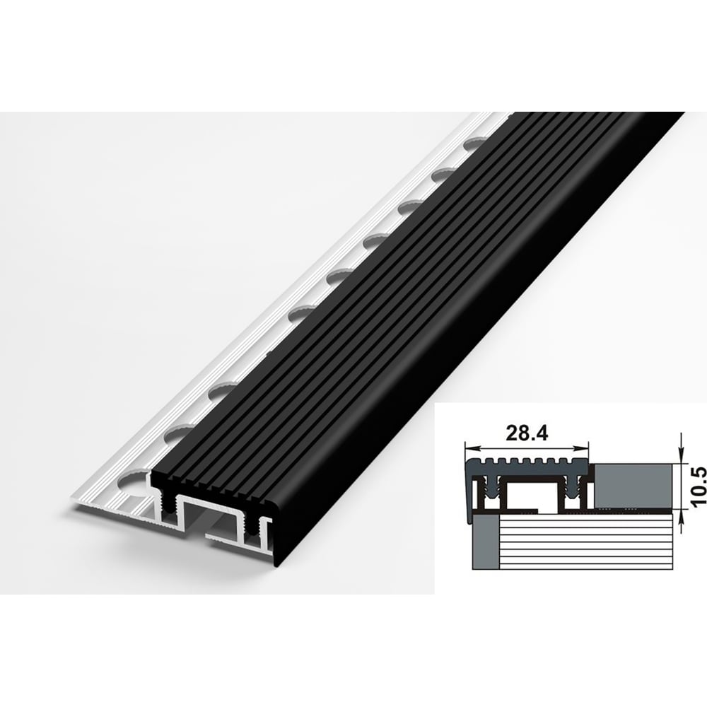 Порог угловой антискользящий алюминиевый декоративный (28,4х10,5 мм, 2,5 м, Черный) ЛУКА УТ000024114