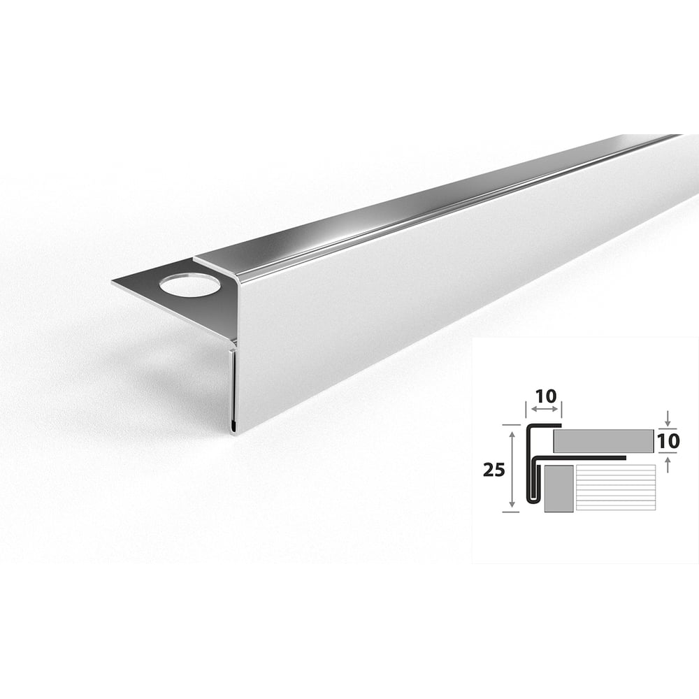 Профиль угловой F-образный под плитку ЛУКА (10 мм, 2,7 м, полированная нержавеющая сталь) УТ000063947
