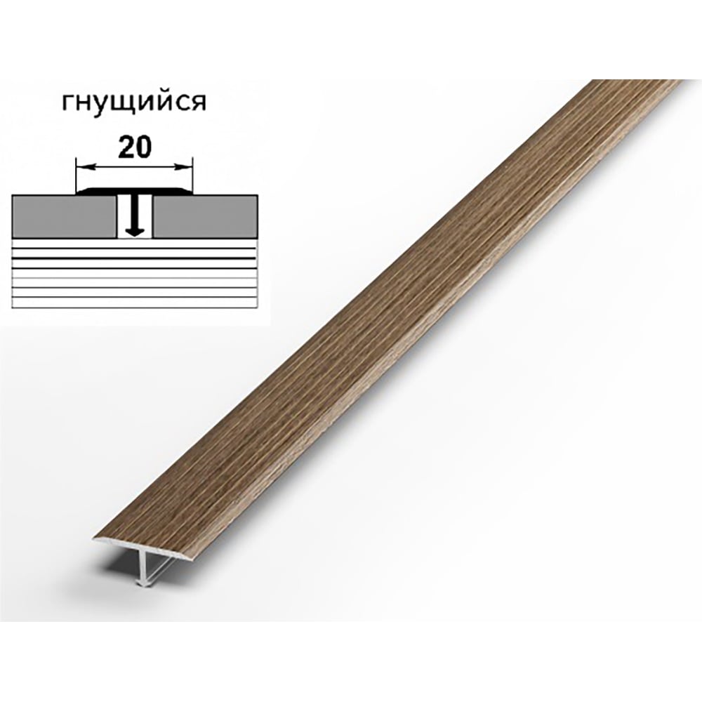 Порог прямой Т-образный алюминиевый ЛУКА (20 мм, 2,7 м, ламинирование, Дуб мокко) УТ000008840
