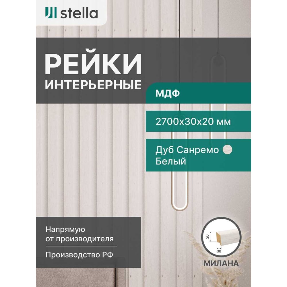 Интерьерная рейка STELLA Милана МДФ, 20x30x2700 мм, Дуб Санремо белый, упаковка 8 шт. ЦБ-00007601
