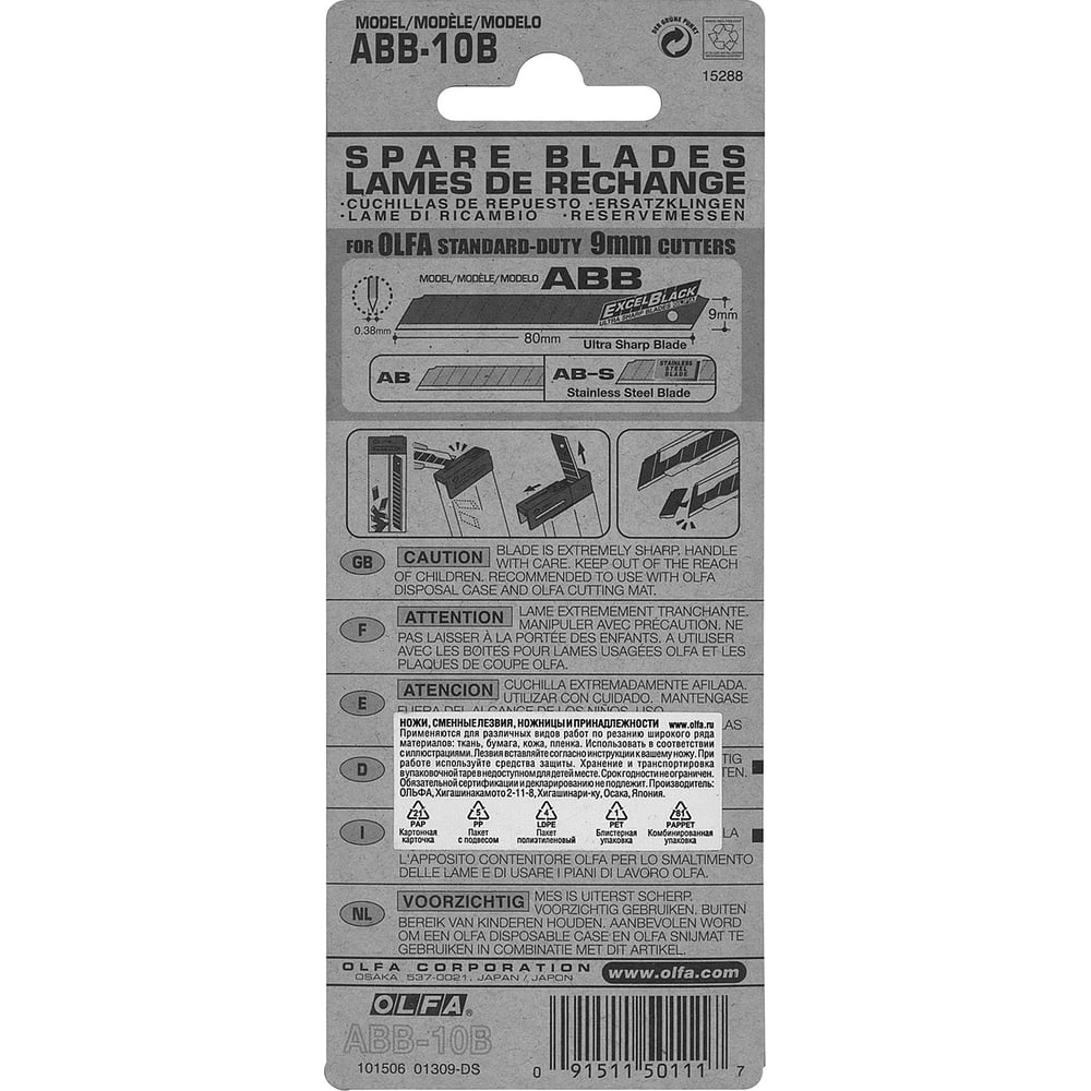 Сегментированные лезвия OLFA Excel Black 9х80х0.38 мм, 13 сегментов, 10 шт OL-ABB-10B