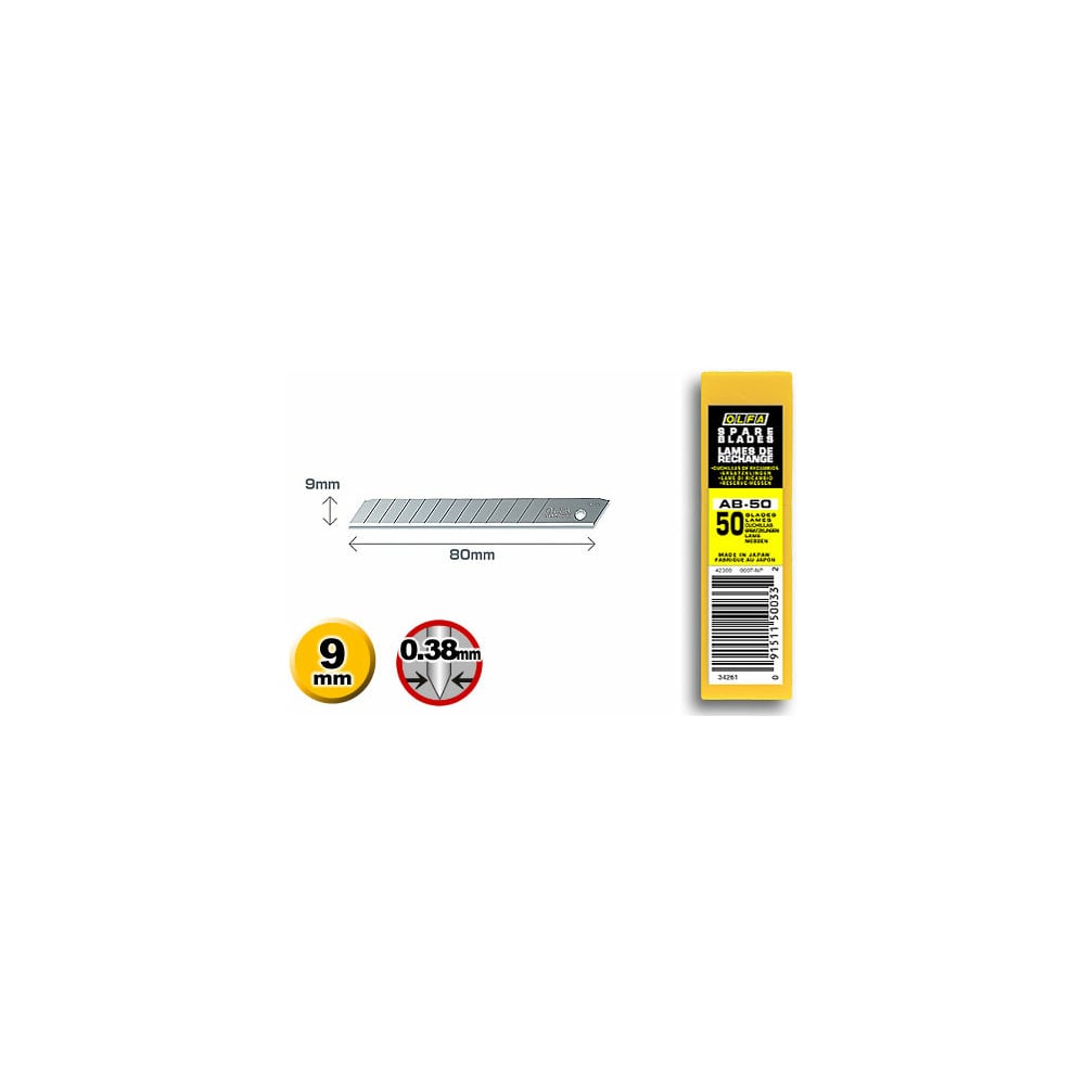 Лезвия olfa сегментированные, 9x80x0,38мм, 13 сегментов, 50 шт ol-ab-50b