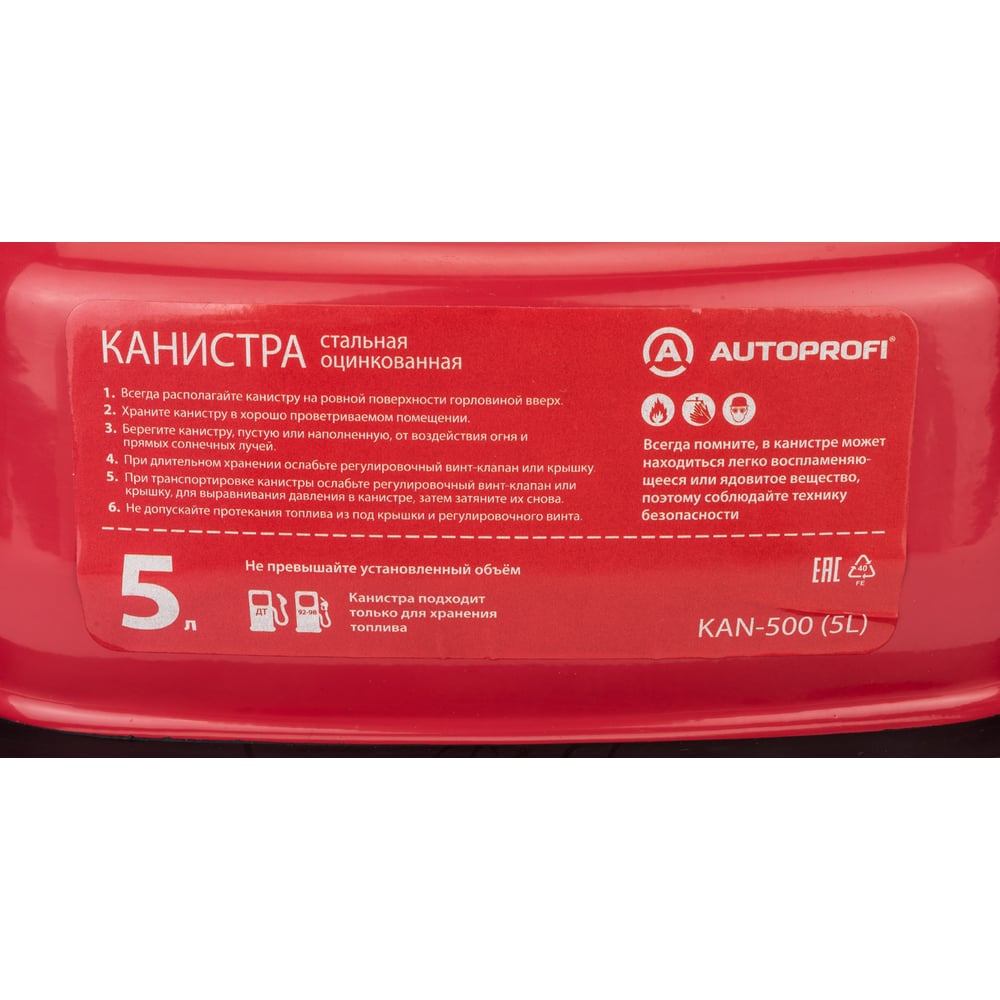 Горизонтальная стальная канистра для бензина 5 литров AUTOPROFI KAN-500 5L