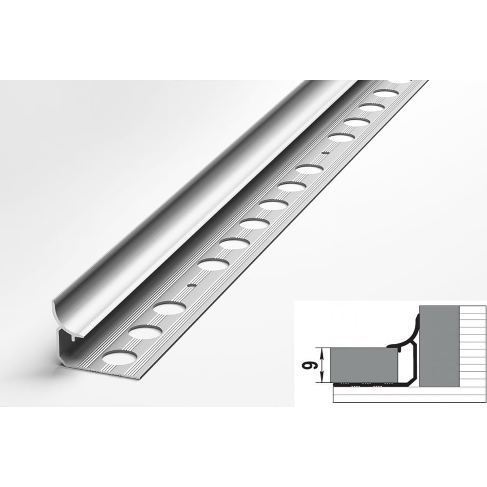 Профиль окантовочный внутренний алюминиевый ЛУКА 9 мм, 2,7 м, анодированный, Серебро УТ000013638