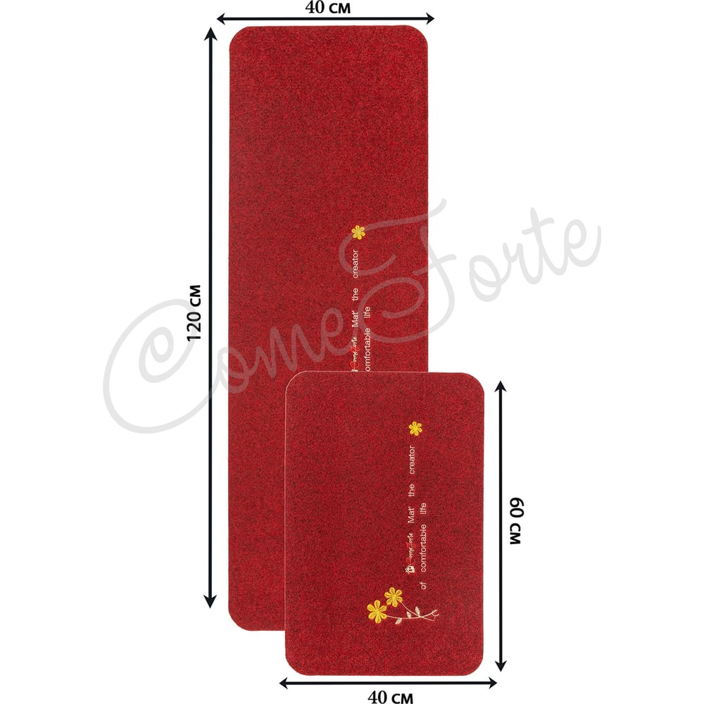 Коврик ComeForte на кухню набор ВЕЛЮР Flower 40х60, 40х120 см Бордовый КМ-011 KM-011M