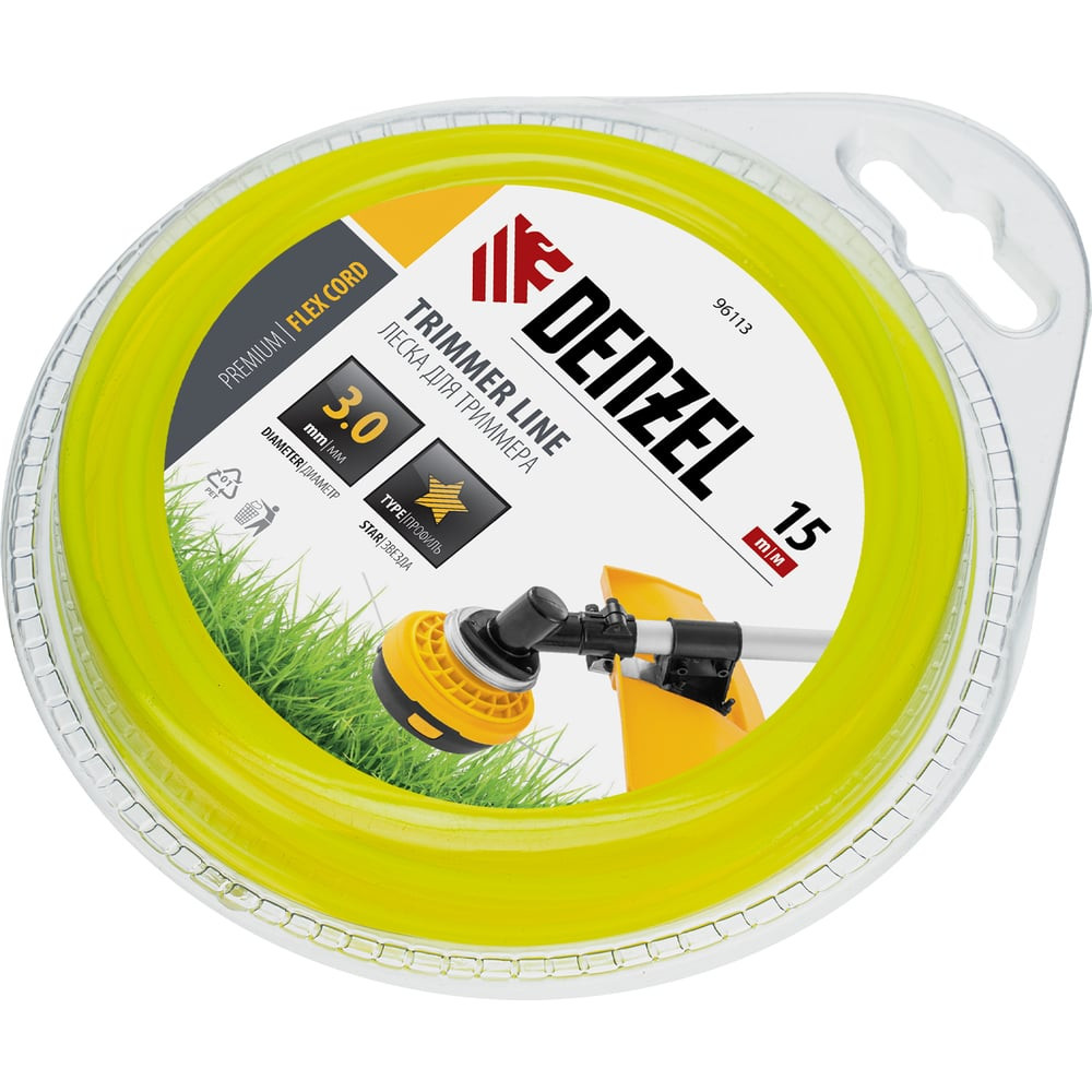 Леска для триммера звезда 3 мм х 15 м блистер FLEX CORD DENZEL 96113