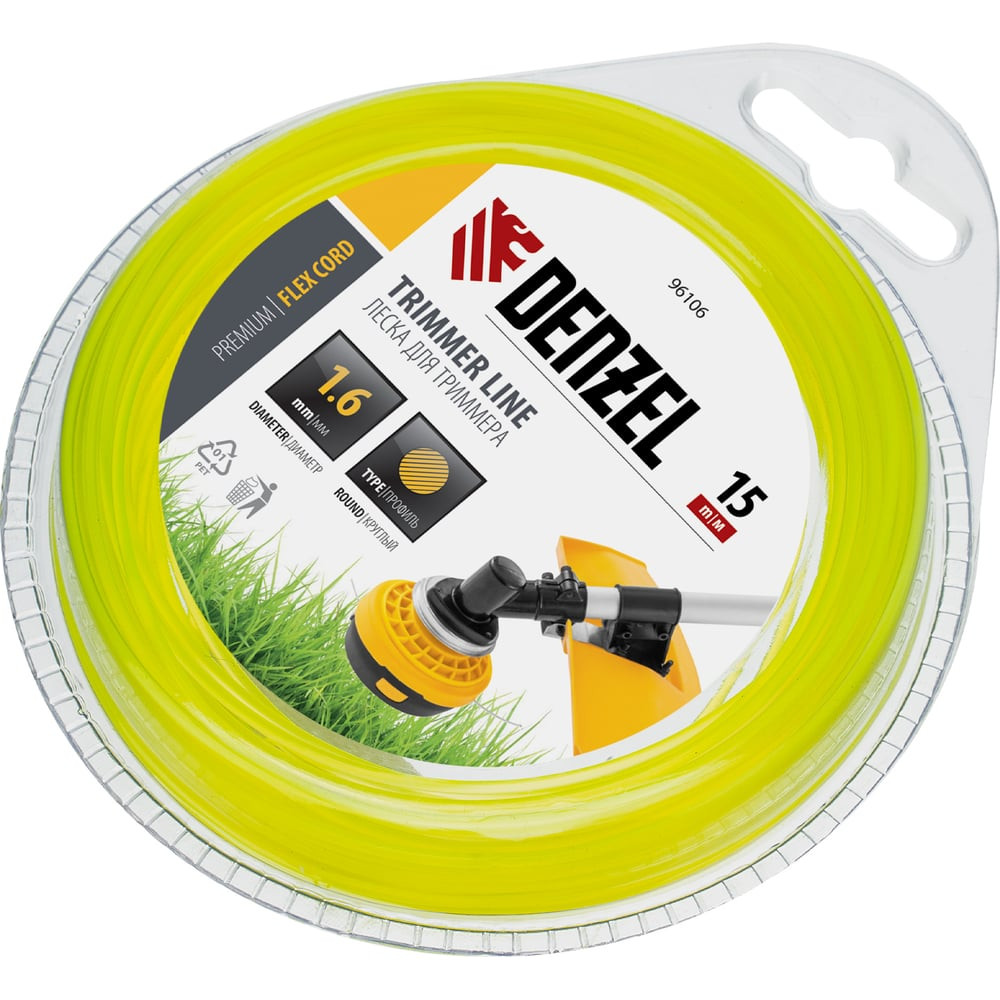 Леска для триммера круг 1,6 мм х 15 м блистер FLEX CORD DENZEL 96106