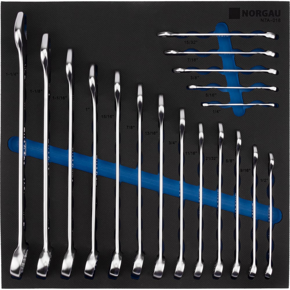 Набор комбинированных дюймовых ключей в ложементе NORGAU 18 шт., 1/4-1.1/4", тип N7A-018 060207018