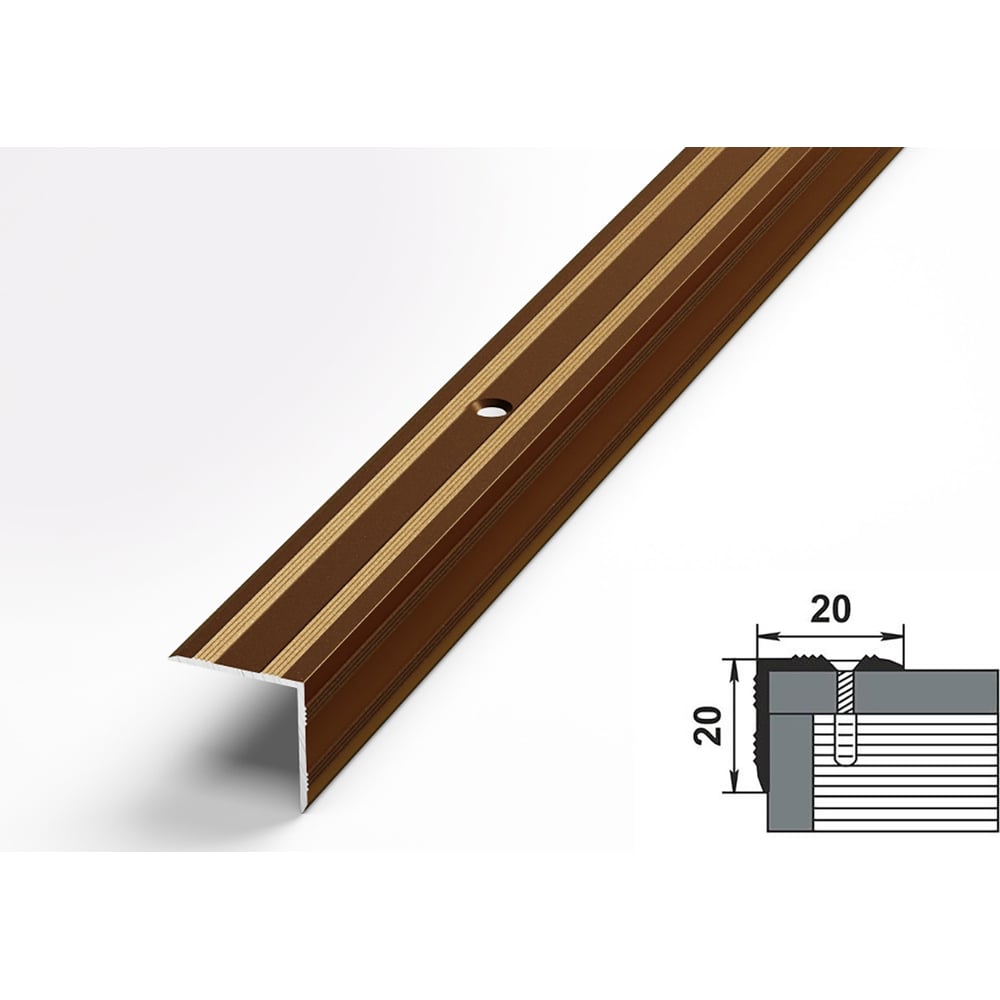 Порог угловой алюминиевый (20х20 мм, 1,8 м, порошковое покрытие, Бронза) ЛУКА 00000001834
