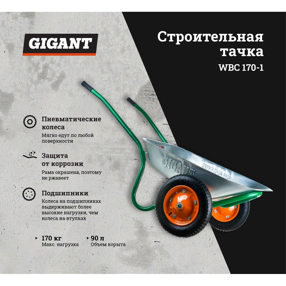 Строительная тачка 90 л, 170кг, пневматические колеса, Gigant WBC 170-1